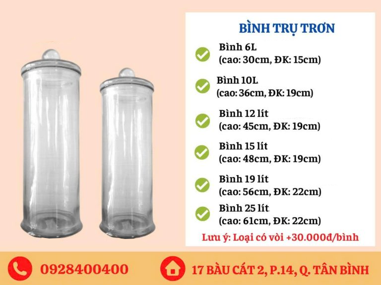 - Bình thủy tinh : Chọn loại từ 10 lít